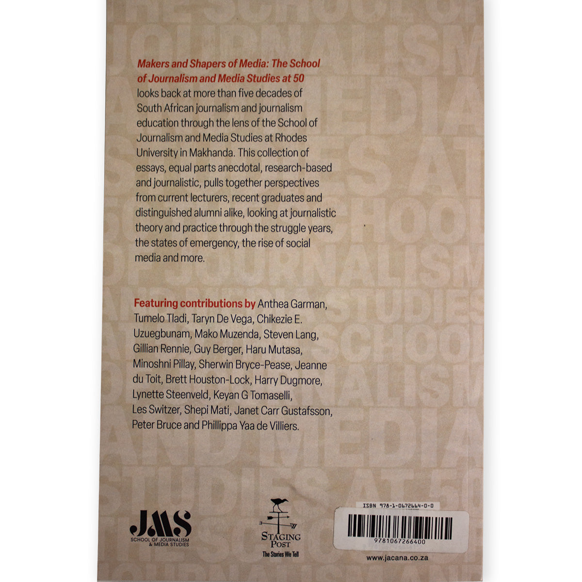 Makers and Shapers of Media: The school of Journalism and Media Studies at 50, looks back at more than five decades of South African journalism and journalism education thorugh the lens of the school of jouralism and Media Studies at Rhodes University in Makhanda.
